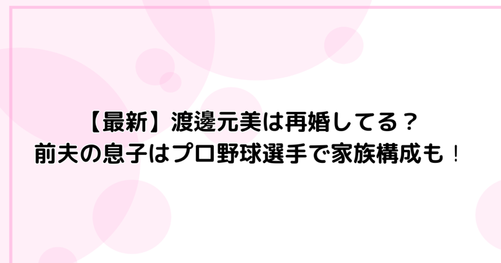 【2026最新】渡邊元美は再婚してる?前夫の息子はプロ野球選手で家族構成も!