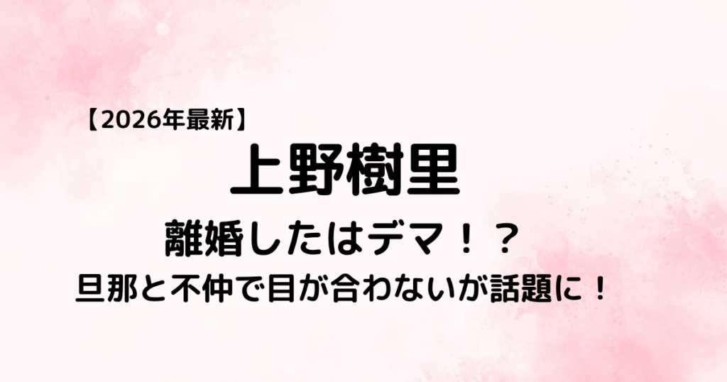 【2026年最新】上野樹里は離婚したはデマ!?旦那と不仲で目が合わないが話題に!