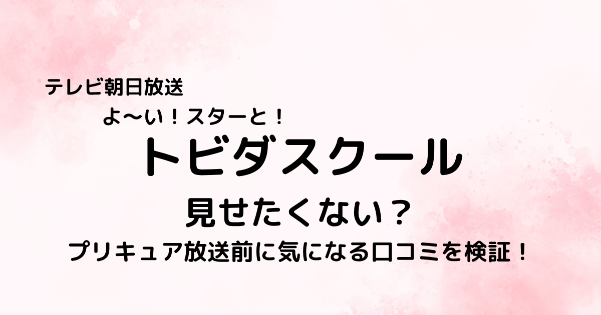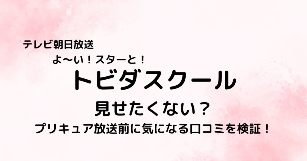 2026年4月からスタートしたテレビ朝日放送の「よ〜い!スターと!トビダスクール」。 朝8時~放送され30分番組で、子ども向けの朝の時間帯を盛り上げる新たなエンターテインメントとして注目を集めています。 しかし一方で「プリキュア」の放送直前という... -