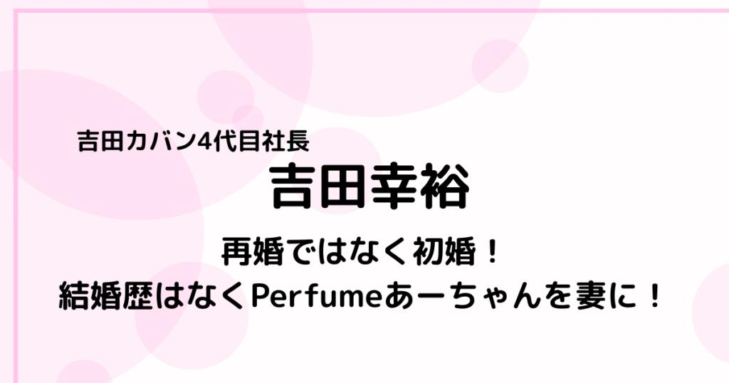 吉田幸裕は再婚ではなく初婚!結婚歴はなくPerfumeあーちゃんを妻に!