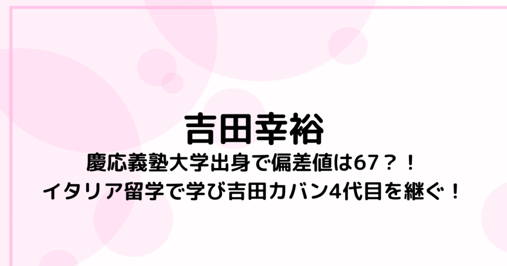 吉田幸裕は慶応義塾大学出身で偏差値67?!イタリア留学で学び吉田カバン4代目を継ぐ!