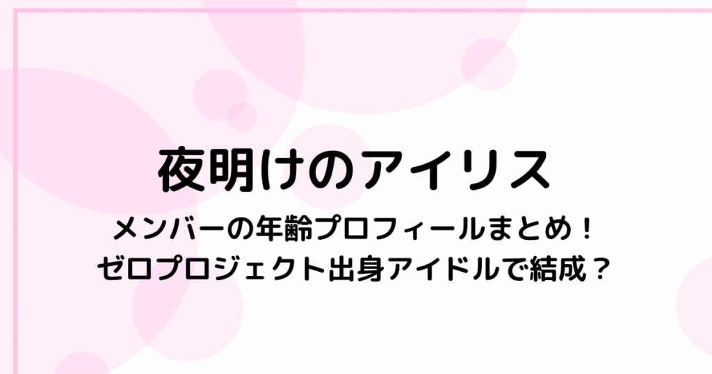 今注目を集めている女性アイドルグループ「夜明けのアイリス」についてご紹介します、 一体どんなメンバーがいるのかどんな人たちがいるのかなと思われ方も多いのではないでしょうか。 まずは、【夜明けのアイリス】メンバーの年齢やプロフィールを知って... -