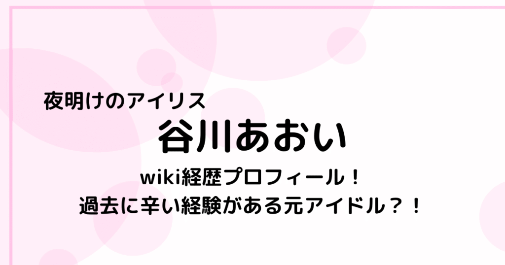 女性アイドルグループ「夜明けのアイリス」に所属する、谷川あおい(たにかわ あおい)さんです。 メンバーの谷川あおいさんって、一体どんな人なのかな思われ方も多いのではないでしょうか。 まずは、谷川あおいさんのプロフィールや経歴が気になりまよね... -