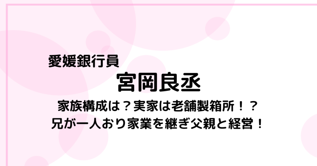 【顔画像】宮岡良丞の家族構成!兄が一人おり実家の老舗製箱所を継ぎ父親と経営!