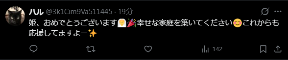 ご結婚というおめでたいできごとに、芸能界やファンの方々からお祝いのコメントが多数でています。