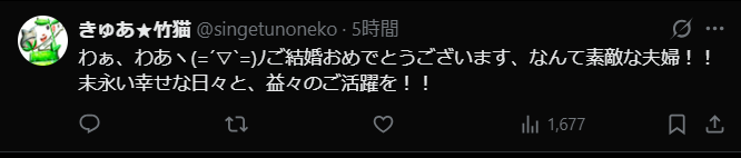 そういったことから、飯田雪乃さんと土屋シオンさんの結婚発表に、多くの祝福の声が上がっていました。