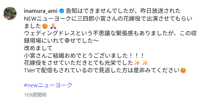 実は、番組の企画として花嫁役で純白のウェディングドレスを着用していたことが分かりました。