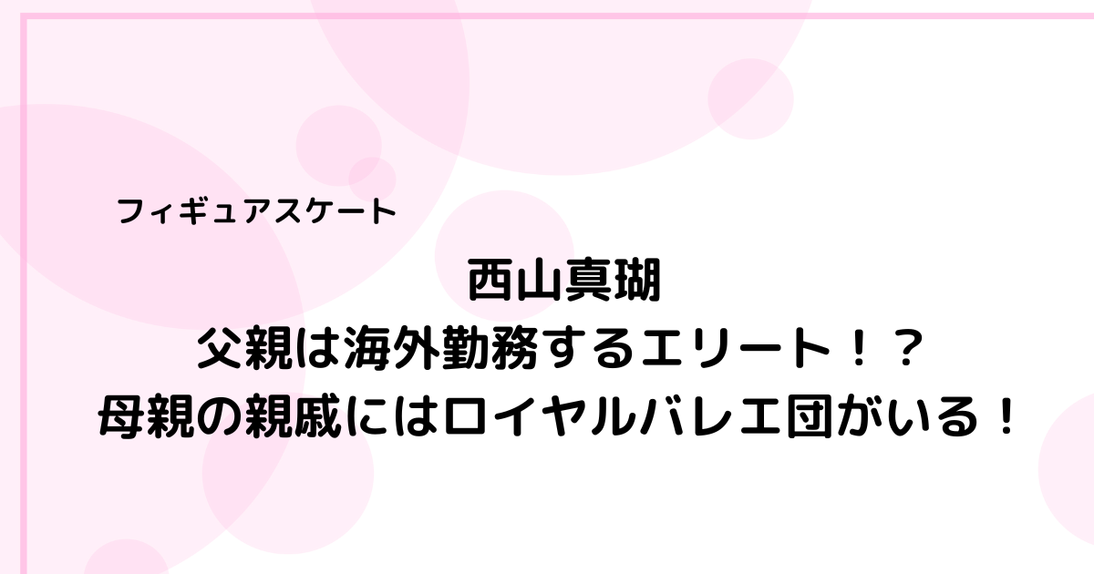 こちらでは「【画像】西山真瑚の父親は海外勤務するエリート!?母親の親戚にはロイヤルバレエ団がいる!」ということでご紹介しました。