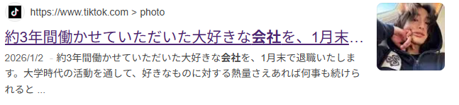 年末に会社を辞める旨の投稿をしていたが、現在はその投稿や過去のSNS投稿が削除されている