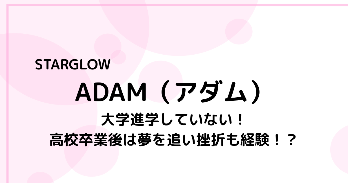 こちらでは、「STARGLOWアダムは大学進学していない!高校卒業後は夢を追い挫折も経験!?」についてご紹介しました。