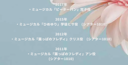 ただし公式サイトを見てみると、2011年にミュージカルに出演したことが明らかであり子役時代から活躍していた可能性があります。