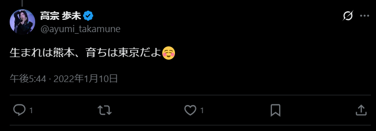 両親が熊本県出身あると明かしており、自身も生粋の熊本の血が流れているとも語っていました。