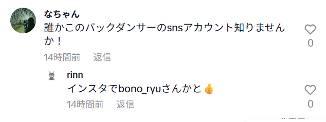 SNSでも男性ダンサーは誰なのかと気になる方が多く、動画のコメント内にありました。