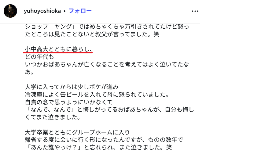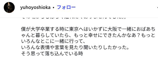 しかしながら吉岡悠歩さんのSNSの投稿などから、大学卒業までは大阪を拠点に生活していたことが分かっています。