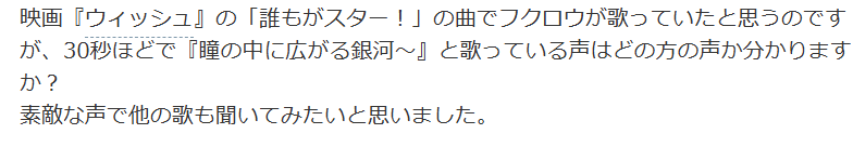 その際には、フクロウのキャラクター役として声の演技+コーラス歌唱に参加しており、声優としての活躍も披露しました。